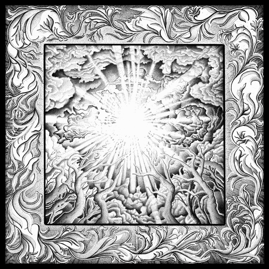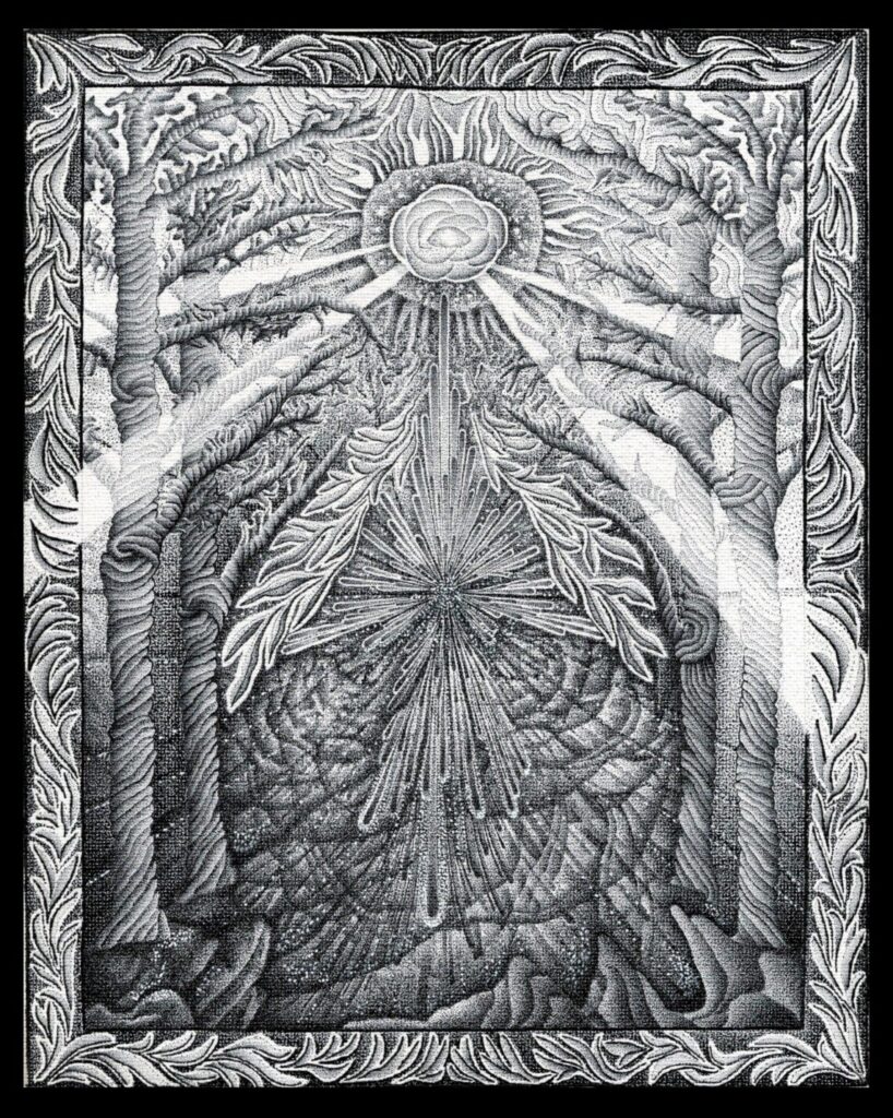 hand drawn ink on canvas, worked on this piece for over a year. the light you see upon death