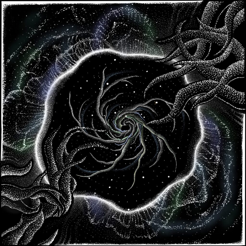first ever procreate drawing. the tether of space tuned in