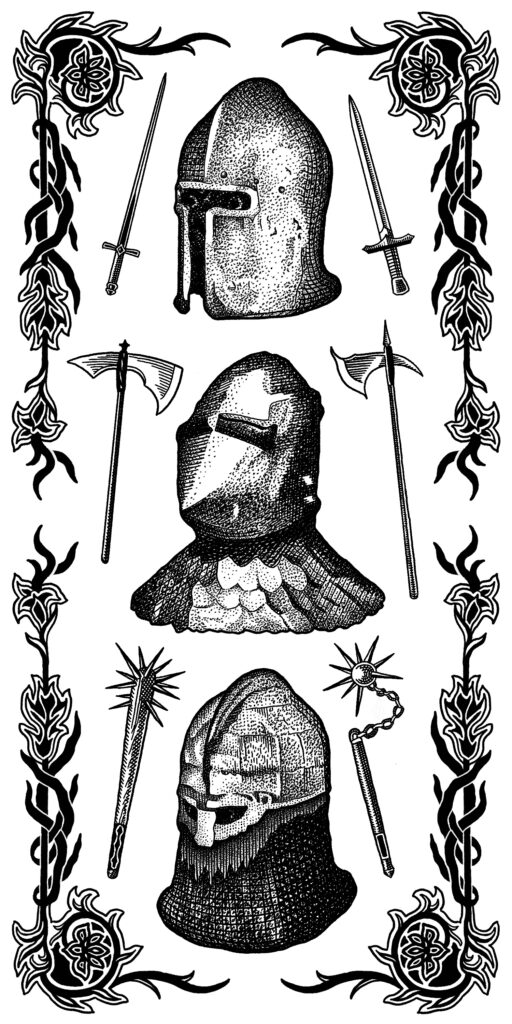 my art piece for the show, medieval fighters and their weapons